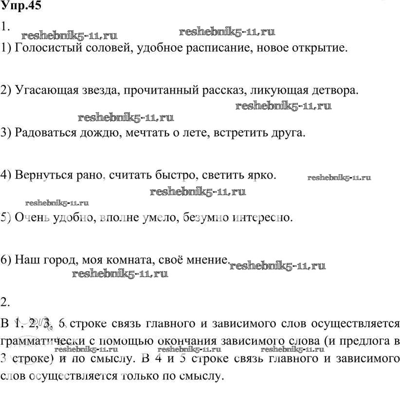 Готовая домашняя работа с ответами по Русскому языку за 8 класс Разумовская, Львова, Капинос, Львов Учебник Вертикаль Дрофа 2013 ФГОС - Упражнения 45