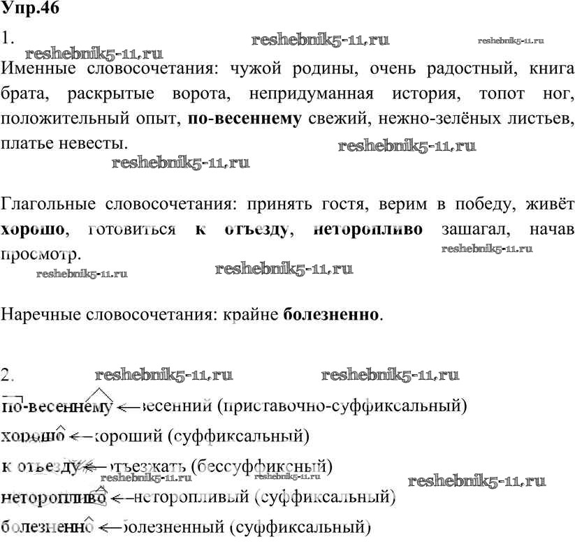Готовая домашняя работа с ответами по Русскому языку за 8 класс Разумовская, Львова, Капинос, Львов Учебник Вертикаль Дрофа 2013 ФГОС - Упражнения 46