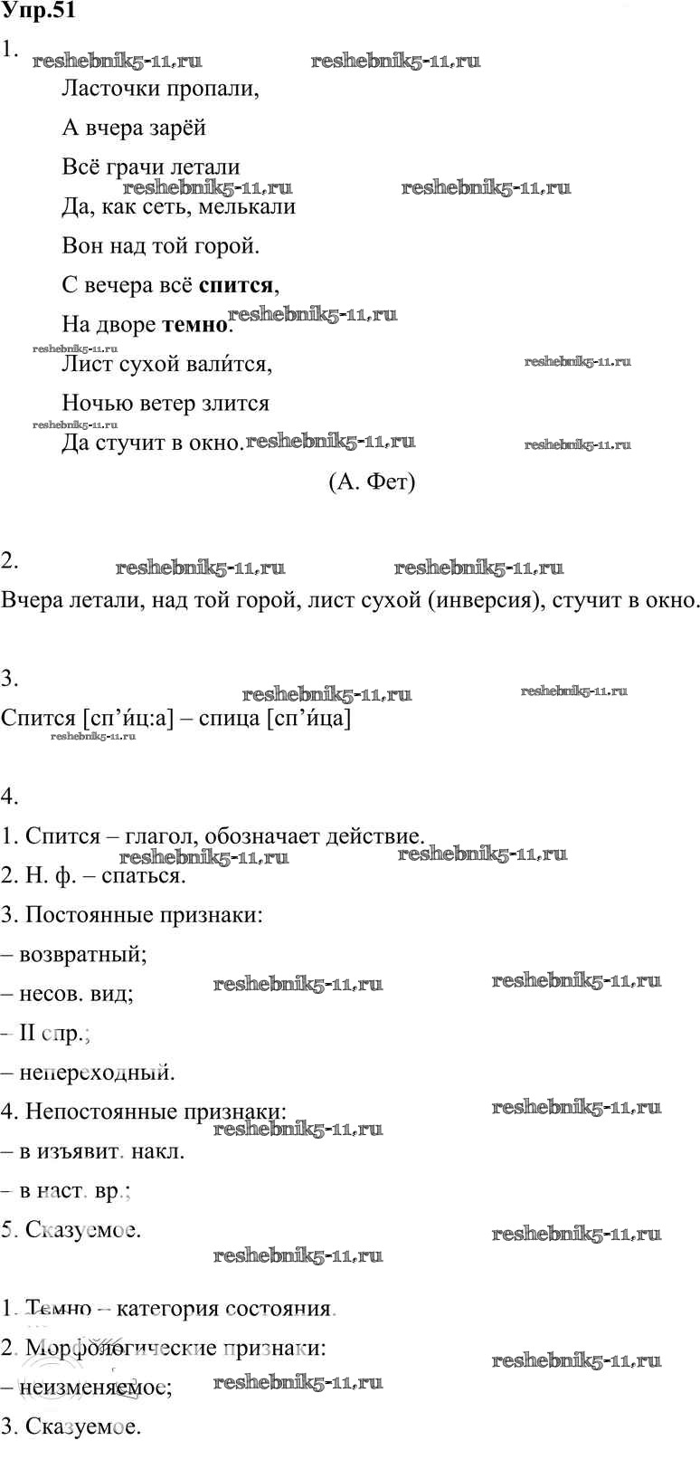 Готовая домашняя работа с ответами по Русскому языку за 8 класс Разумовская, Львова, Капинос, Львов Учебник Вертикаль Дрофа 2013 ФГОС - Упражнения 51