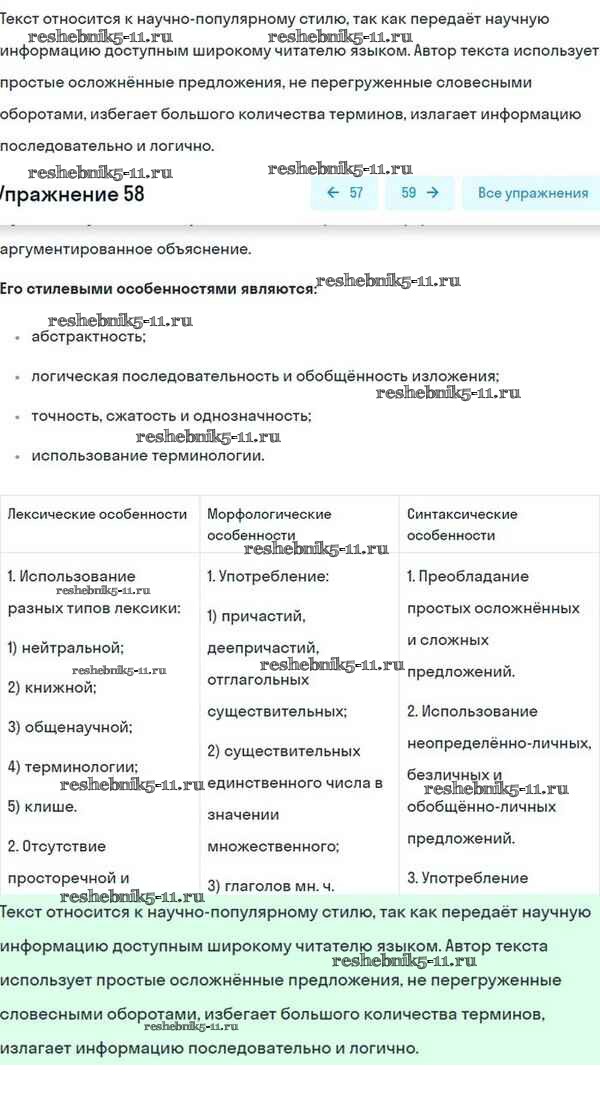 Русский язык за 8 класс Разумовская Учебник Вертикаль Дрофа упражнение 58