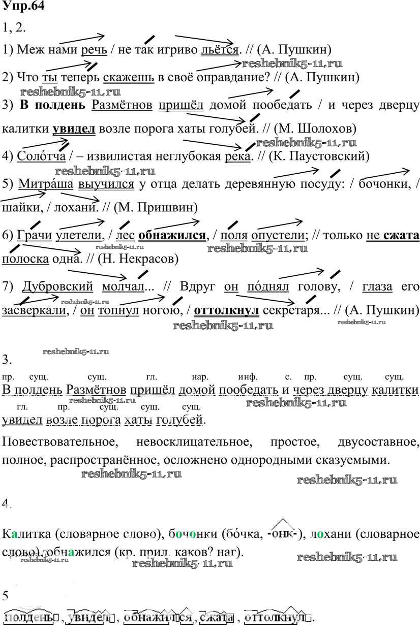 Готовая домашняя работа с ответами по Русскому языку за 8 класс Разумовская, Львова, Капинос, Львов Учебник Вертикаль Дрофа 2013 ФГОС - Упражнения 64