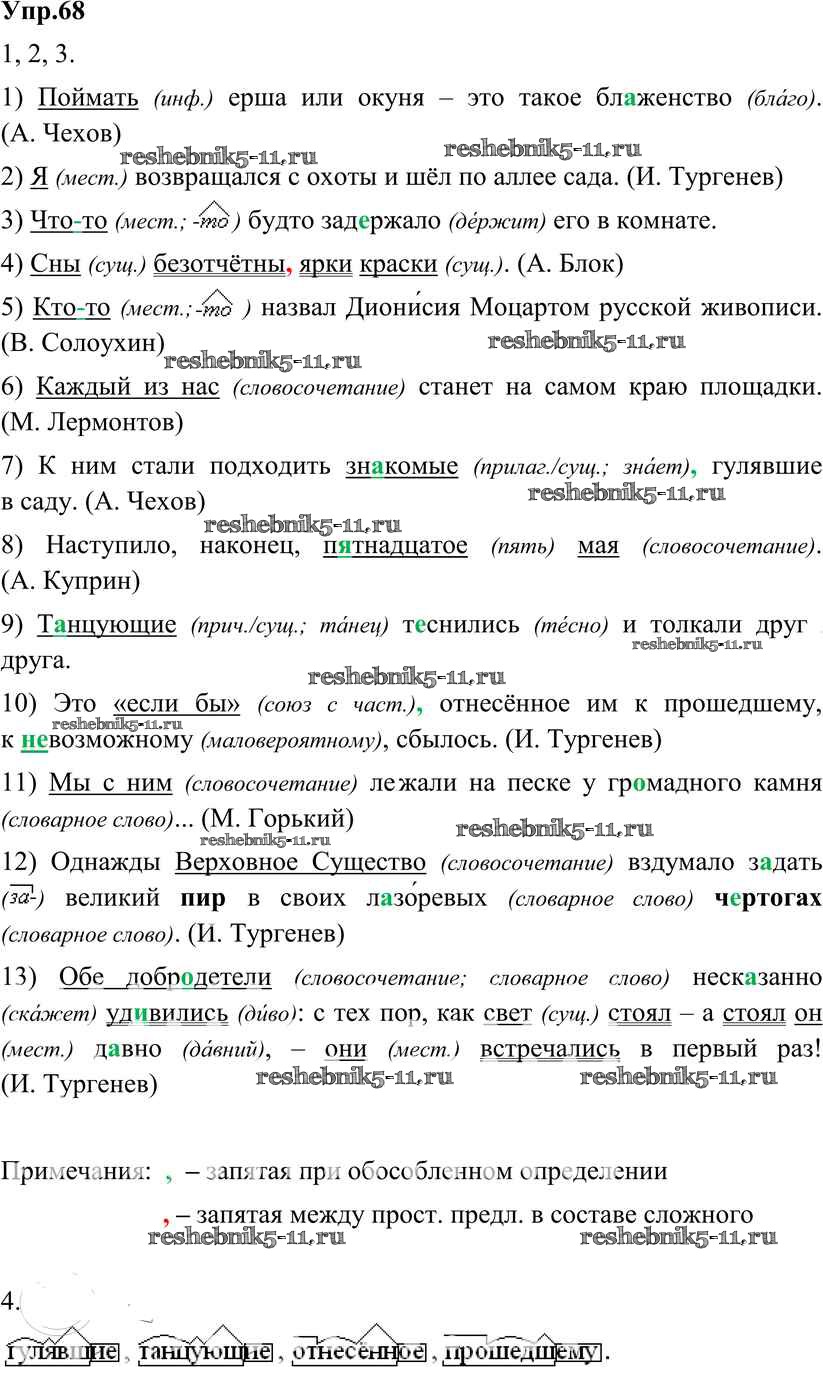Готовая домашняя работа с ответами по Русскому языку за 8 класс Разумовская, Львова, Капинос, Львов Учебник Вертикаль Дрофа 2013 ФГОС - Упражнения 68