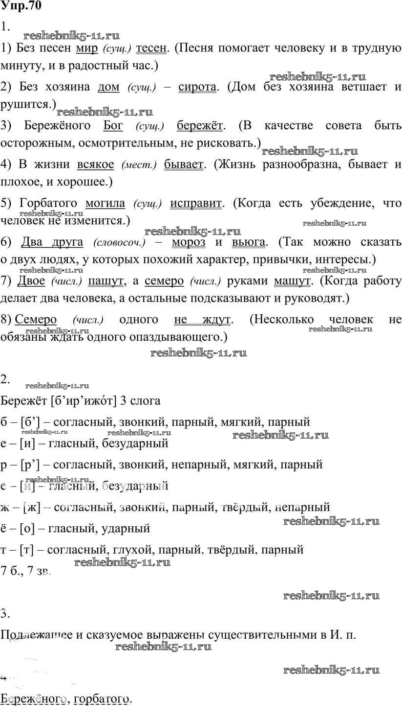 Готовая домашняя работа с ответами по Русскому языку за 8 класс Разумовская, Львова, Капинос, Львов Учебник Вертикаль Дрофа 2013 ФГОС - Упражнения 70