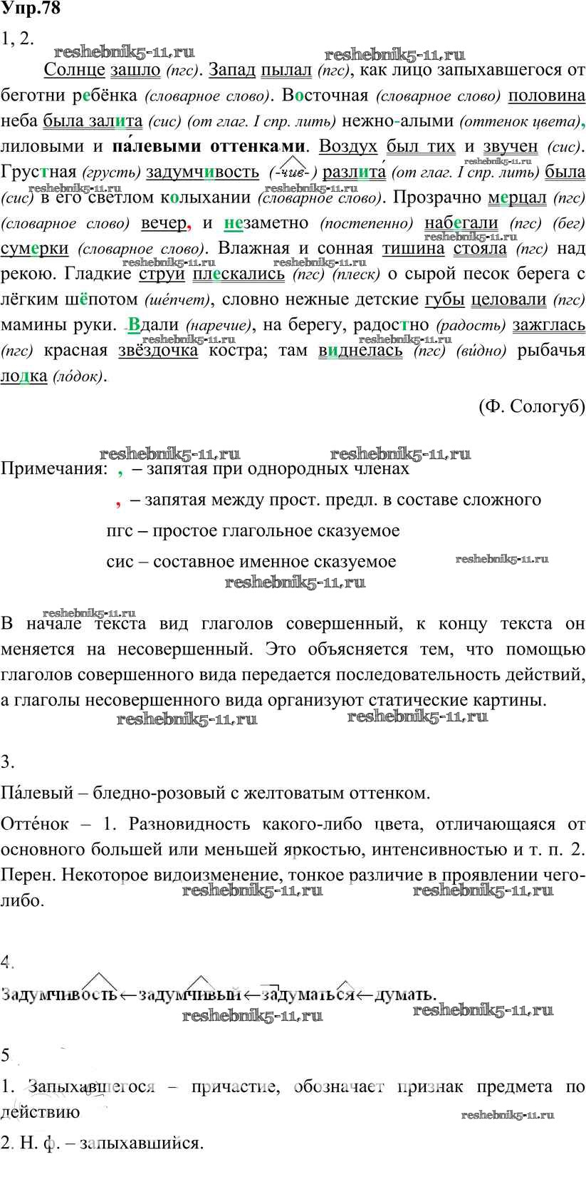 Готовая домашняя работа с ответами по Русскому языку за 8 класс Разумовская, Львова, Капинос, Львов Учебник Вертикаль Дрофа 2013 ФГОС - Упражнения 78