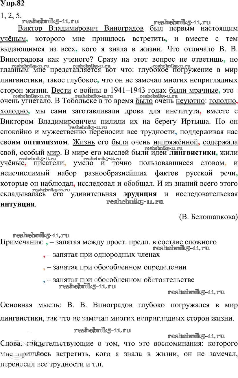 Готовая домашняя работа с ответами по Русскому языку за 8 класс Разумовская, Львова, Капинос, Львов Учебник Вертикаль Дрофа 2013 ФГОС - Упражнения 82