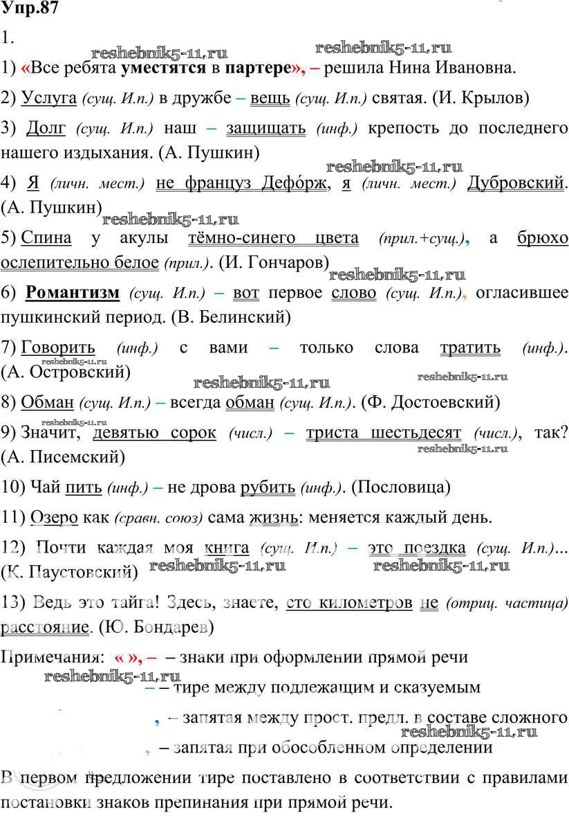 Готовая домашняя работа с ответами по Русскому языку за 8 класс Разумовская, Львова, Капинос, Львов Учебник Вертикаль Дрофа 2013 ФГОС - Упражнения 87