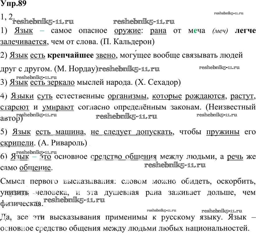 Готовая домашняя работа с ответами по Русскому языку за 8 класс Разумовская, Львова, Капинос, Львов Учебник Вертикаль Дрофа 2013 ФГОС - Упражнения 89