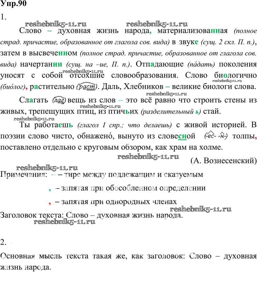 Готовая домашняя работа с ответами по Русскому языку за 8 класс Разумовская, Львова, Капинос, Львов Учебник Вертикаль Дрофа 2013 ФГОС - Упражнения 90