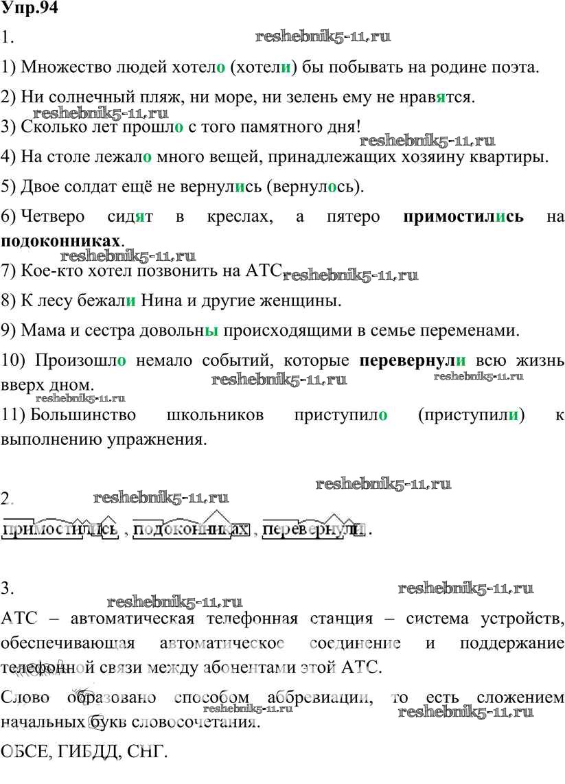 Готовая домашняя работа с ответами по Русскому языку за 8 класс Разумовская, Львова, Капинос, Львов Учебник Вертикаль Дрофа 2013 ФГОС - Упражнения 94