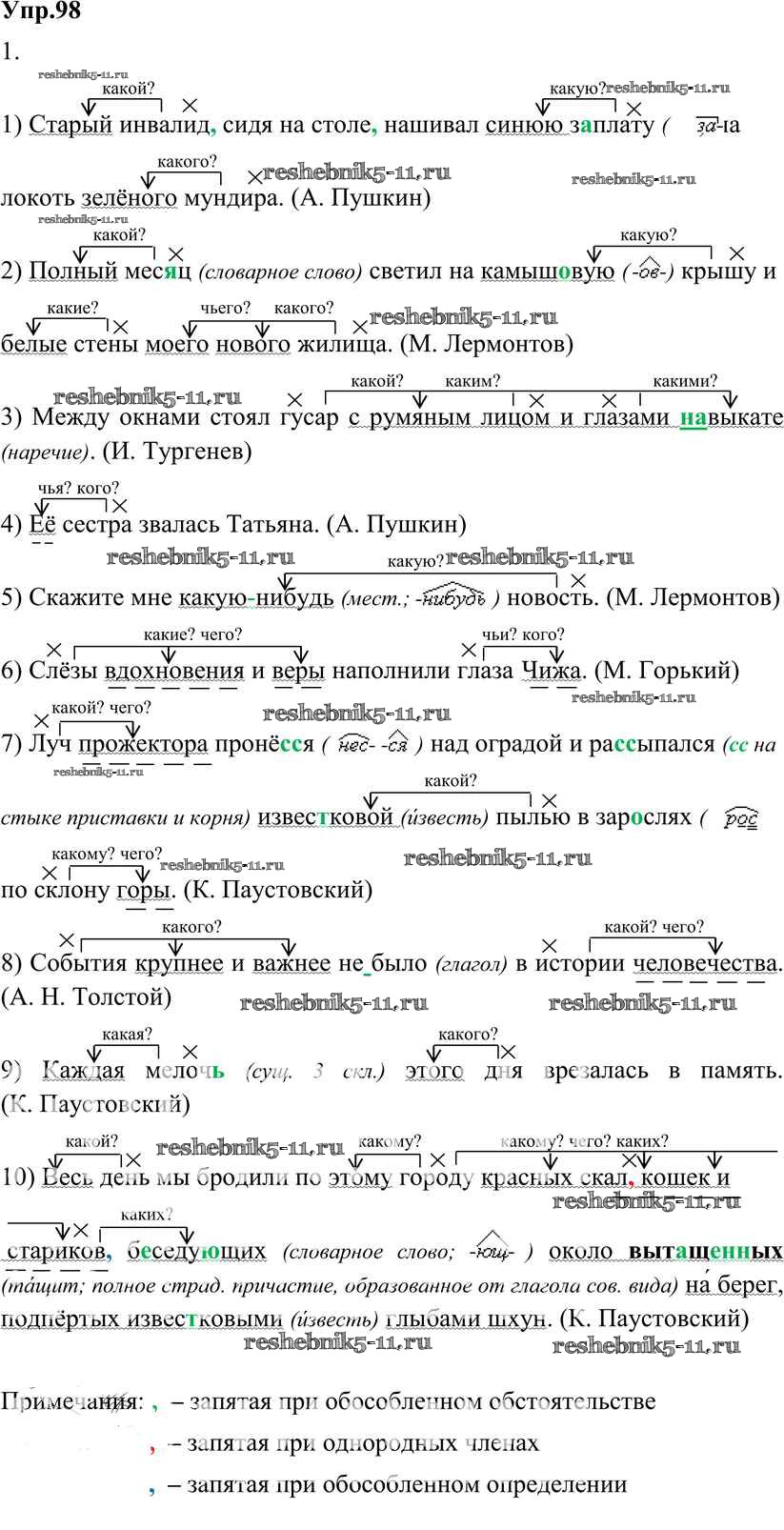 Готовая домашняя работа с ответами по Русскому языку за 8 класс Разумовская, Львова, Капинос, Львов Учебник Вертикаль Дрофа 2013 ФГОС - Упражнения 98