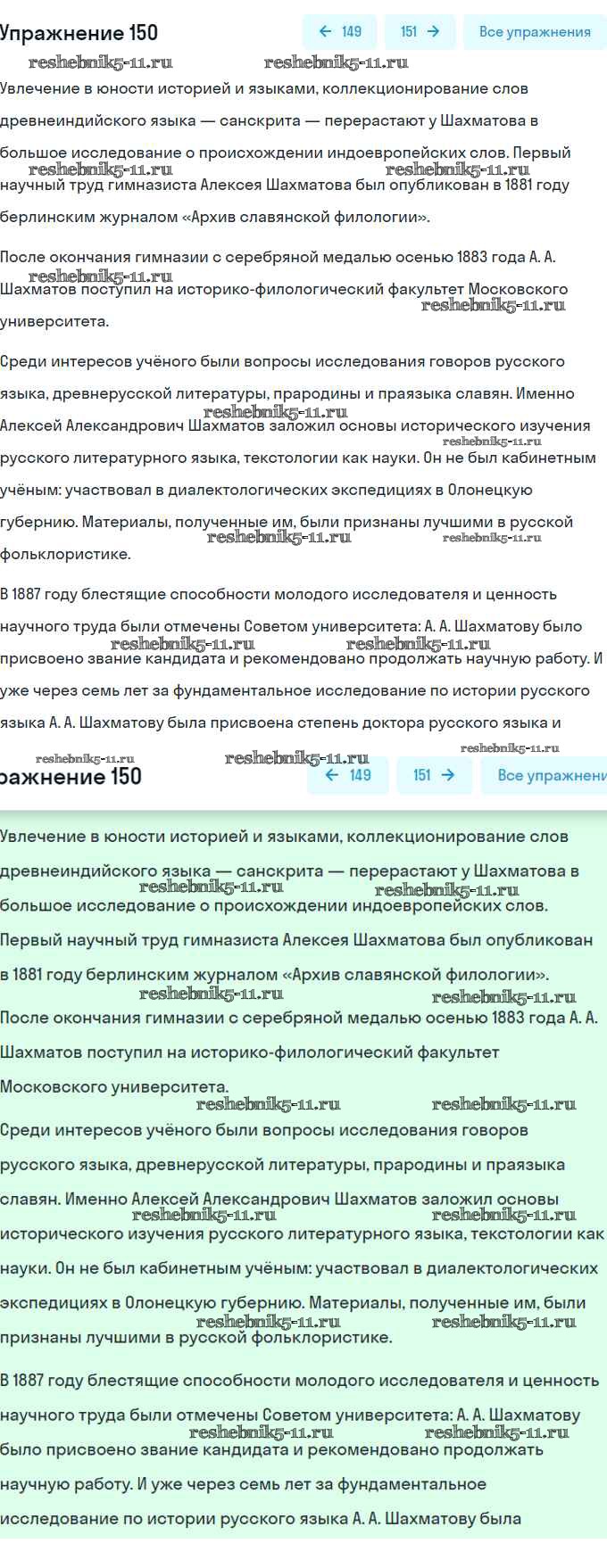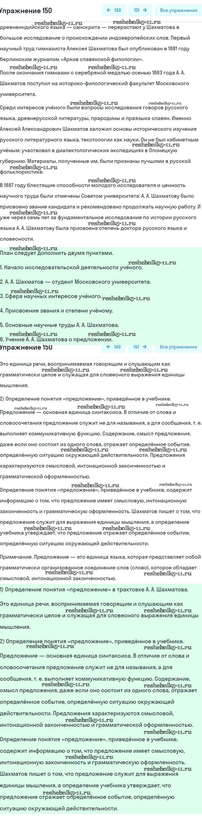 Готовая домашняя работа с ответами по Русскому языку за 8 класс Рыбченкова, Александрова, Загоровская, Нарушевич Учебник УМК Просвещение 2015 ФГОС - Упражнения 150