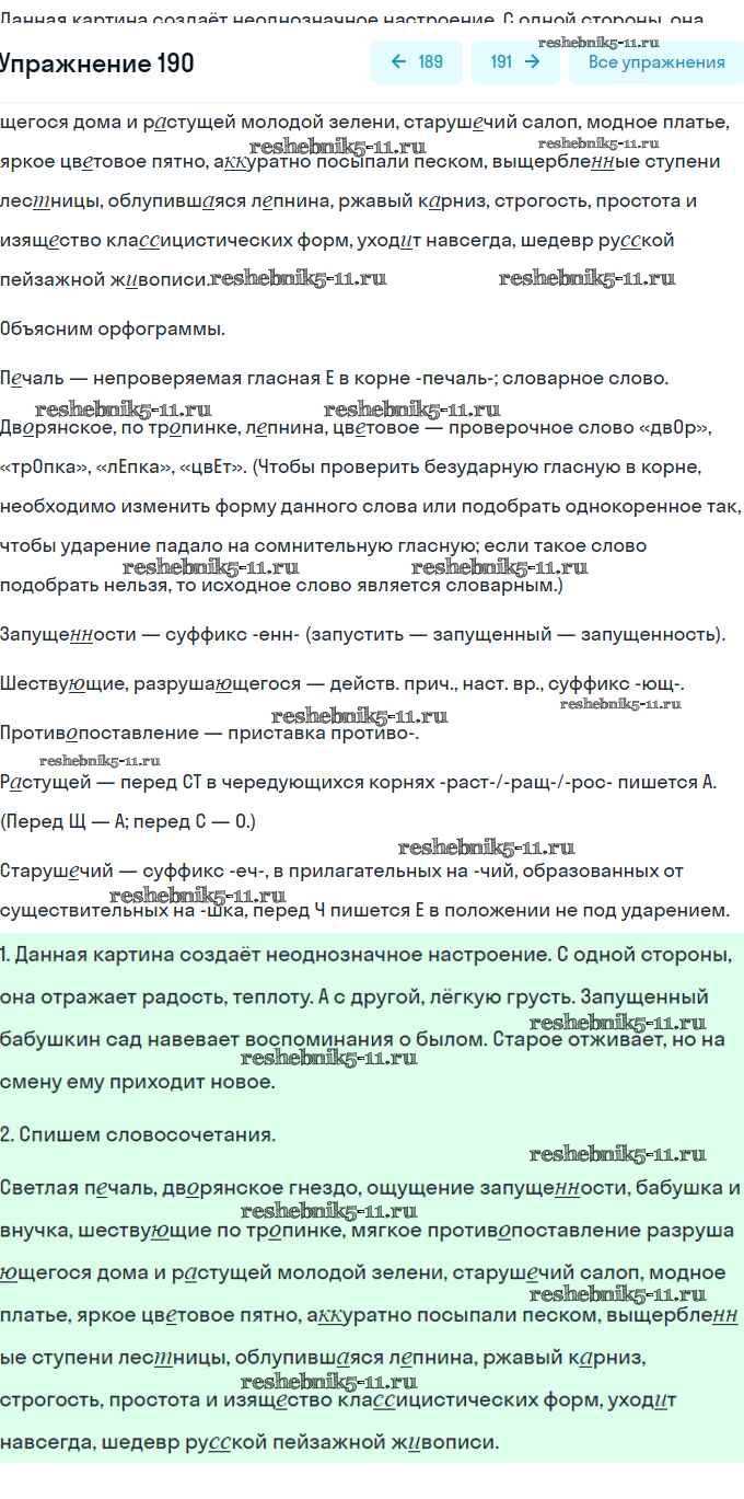 Готовая домашняя работа с ответами по Русскому языку за 8 класс Рыбченкова, Александрова, Загоровская, Нарушевич Учебник УМК Просвещение 2015 ФГОС - Упражнения 190