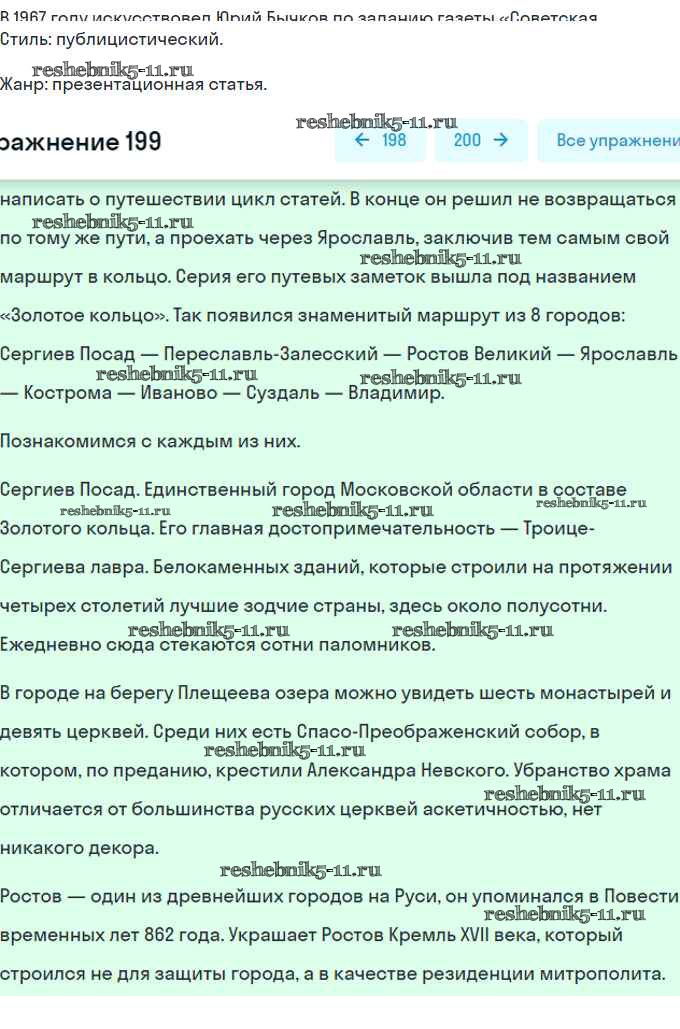 Русский язык за 8 класс Рыбченкова Учебник УМК Просвещение упражнение 199