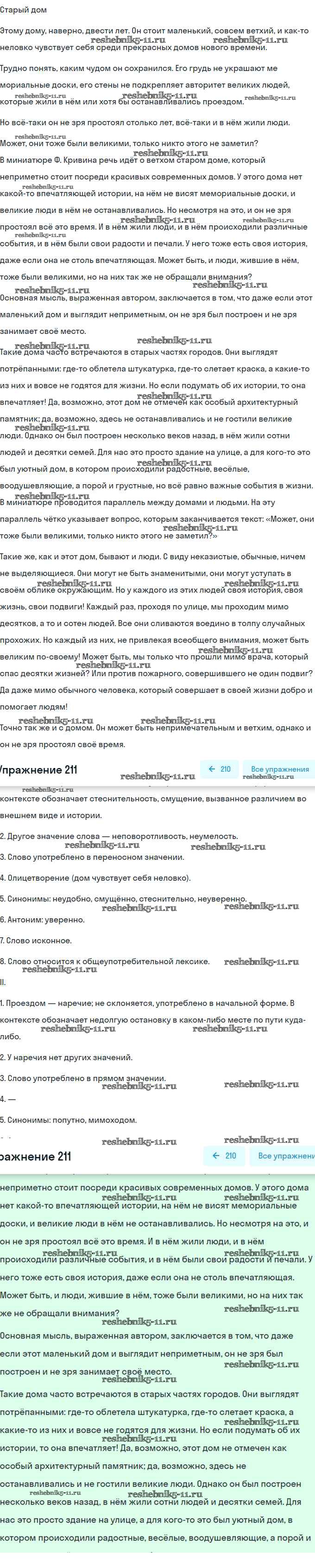 Готовая домашняя работа с ответами по Русскому языку за 8 класс Рыбченкова, Александрова, Загоровская, Нарушевич Учебник УМК Просвещение 2015 ФГОС - Упражнения 211