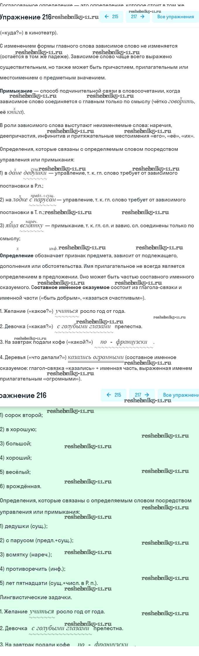 Готовая домашняя работа с ответами по Русскому языку за 8 класс Рыбченкова, Александрова, Загоровская, Нарушевич Учебник УМК Просвещение 2015 ФГОС - Упражнения 216