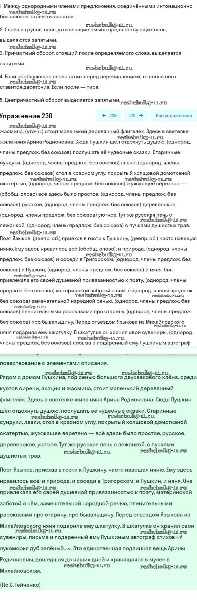 Готовая домашняя работа с ответами по Русскому языку за 8 класс Рыбченкова, Александрова, Загоровская, Нарушевич Учебник УМК Просвещение 2015 ФГОС - Упражнения 230