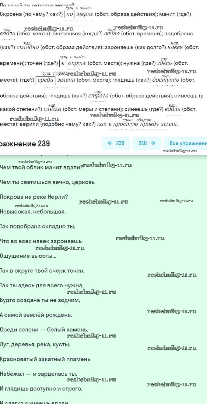 Готовая домашняя работа с ответами по Русскому языку за 8 класс Рыбченкова, Александрова, Загоровская, Нарушевич Учебник УМК Просвещение 2015 ФГОС - Упражнения 239