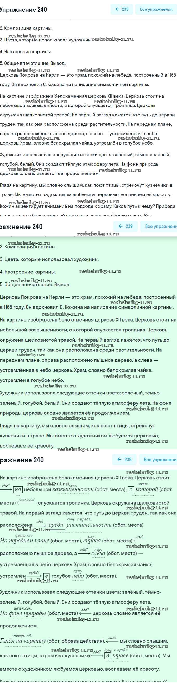 Готовая домашняя работа с ответами по Русскому языку за 8 класс Рыбченкова, Александрова, Загоровская, Нарушевич Учебник УМК Просвещение 2015 ФГОС - Упражнения 240