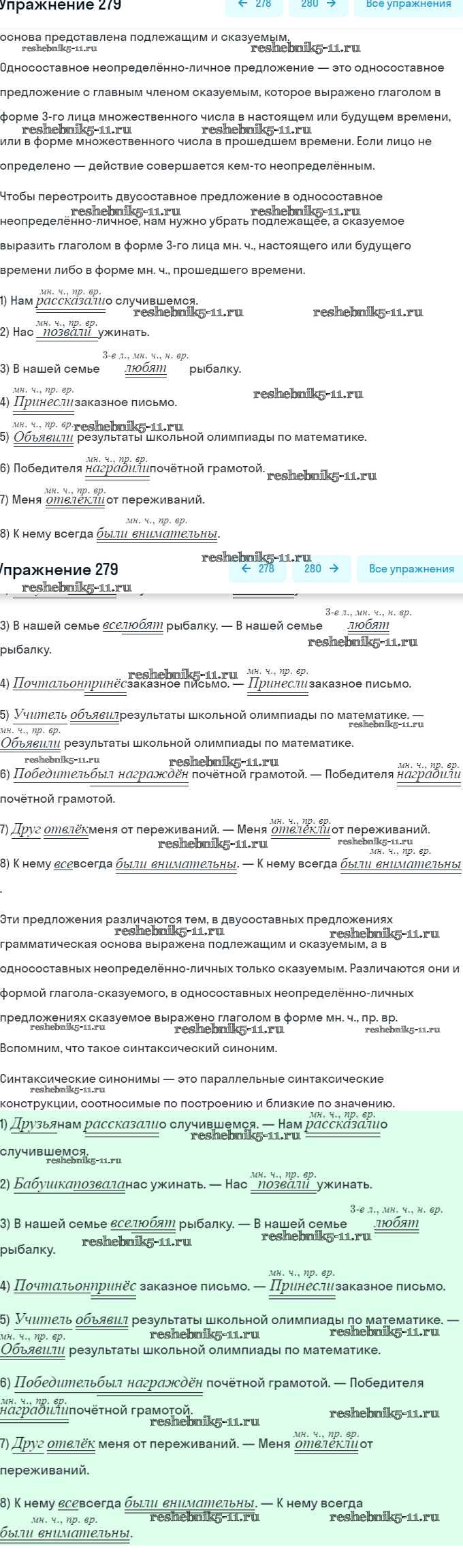 Русский язык за 8 класс Рыбченкова Учебник УМК Просвещение упражнение 279