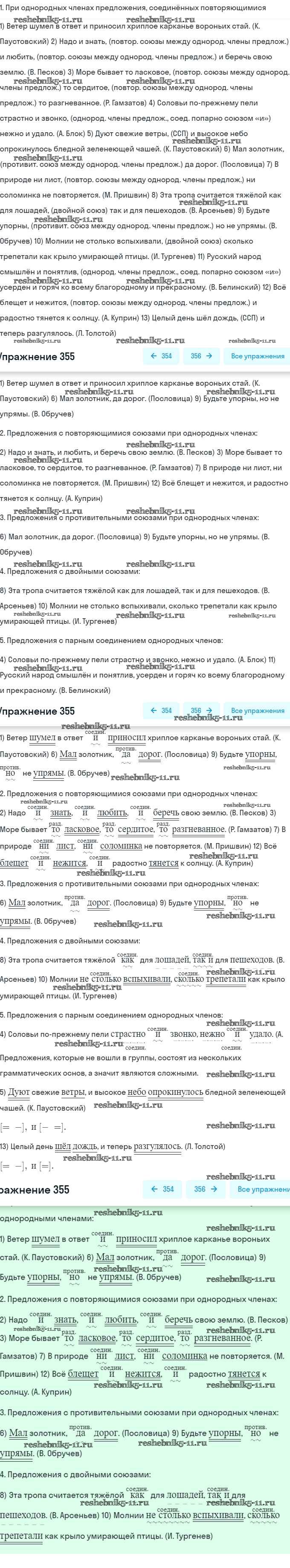 Готовая домашняя работа с ответами по Русскому языку за 8 класс Рыбченкова, Александрова, Загоровская, Нарушевич Учебник УМК Просвещение 2015 ФГОС - Упражнения 355