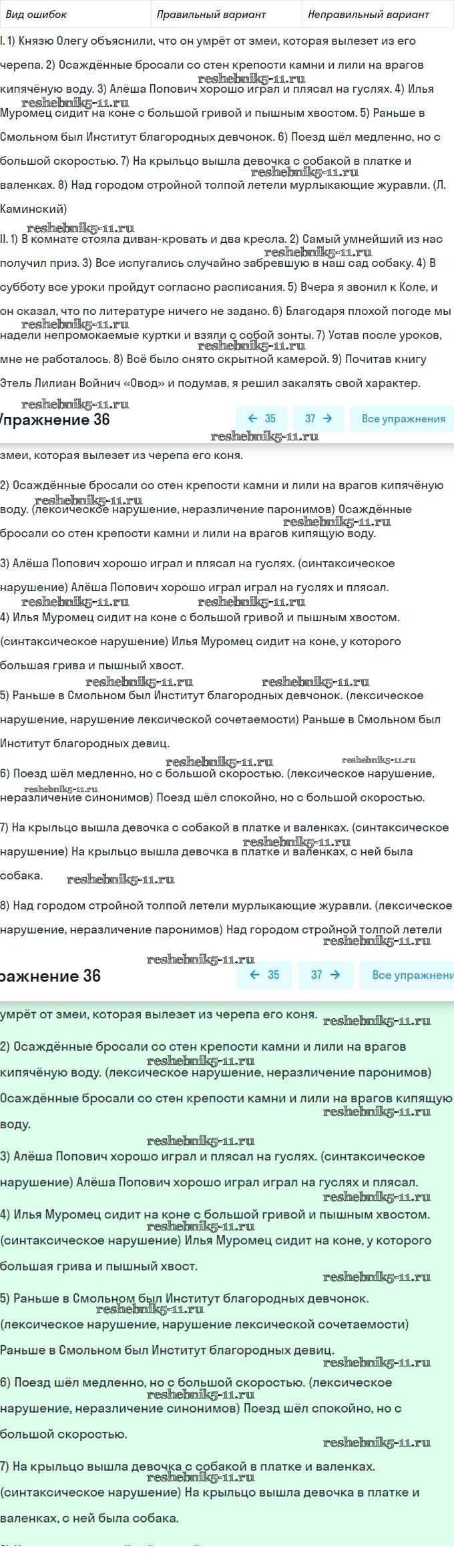 Готовая домашняя работа с ответами по Русскому языку за 8 класс Рыбченкова, Александрова, Загоровская, Нарушевич Учебник УМК Просвещение 2015 ФГОС - Упражнения 36