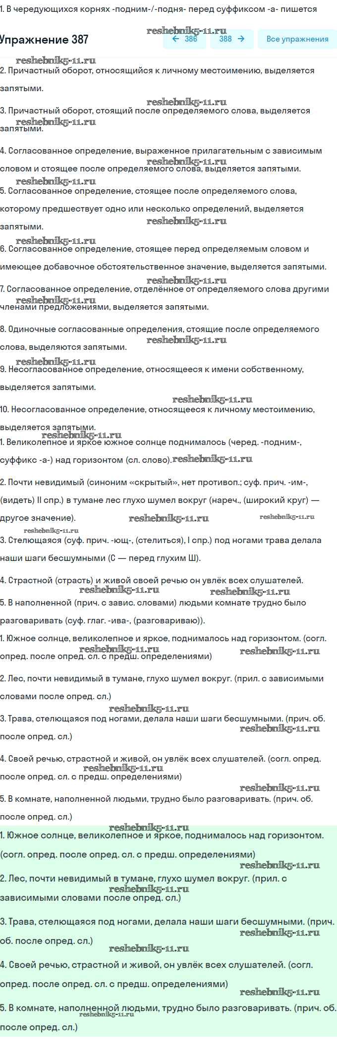 Готовая домашняя работа с ответами по Русскому языку за 8 класс Рыбченкова, Александрова, Загоровская, Нарушевич Учебник УМК Просвещение 2015 ФГОС - Упражнения 387