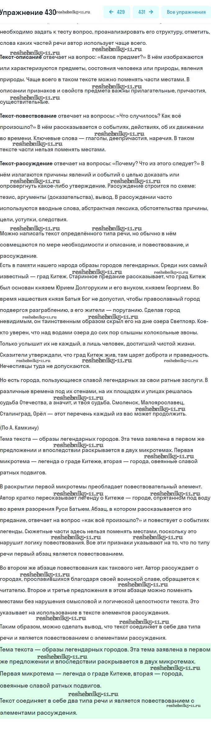 Русский язык за 8 класс Рыбченкова Учебник УМК Просвещение упражнение 430