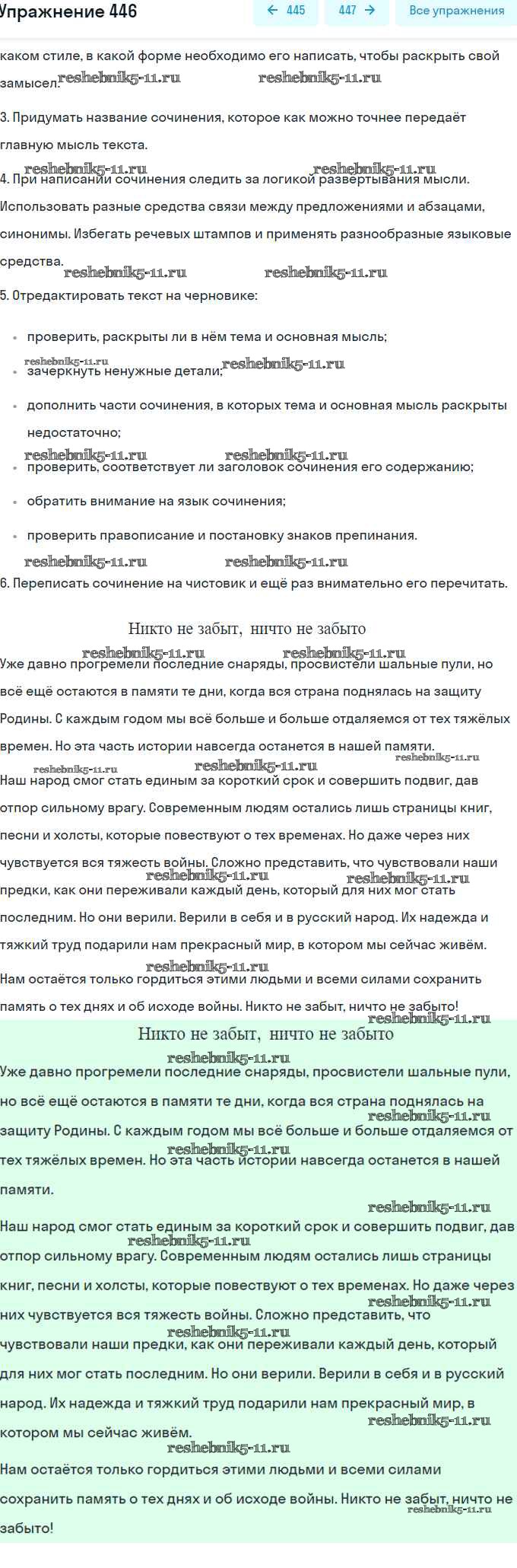 Готовая домашняя работа с ответами по Русскому языку за 8 класс Рыбченкова, Александрова, Загоровская, Нарушевич Учебник УМК Просвещение 2015 ФГОС - Упражнения 446