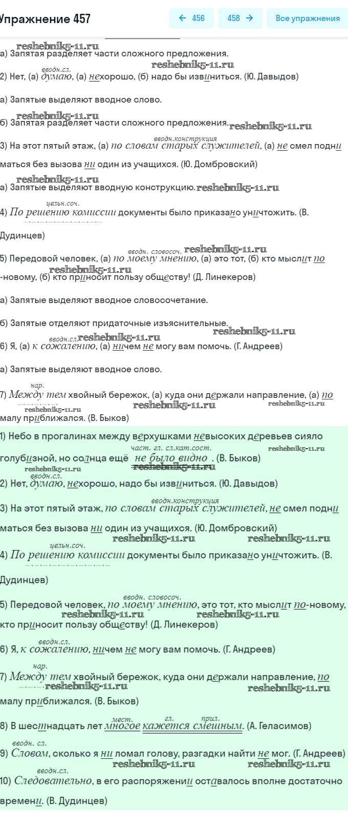 Готовая домашняя работа с ответами по Русскому языку за 8 класс Рыбченкова, Александрова, Загоровская, Нарушевич Учебник УМК Просвещение 2015 ФГОС - Упражнения 457