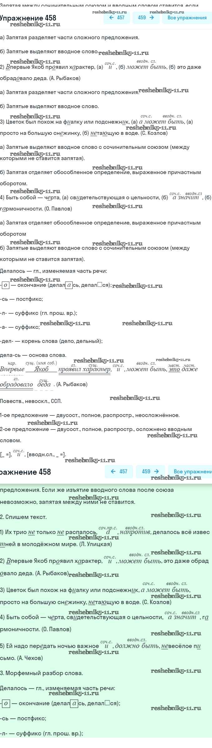 Готовая домашняя работа с ответами по Русскому языку за 8 класс Рыбченкова, Александрова, Загоровская, Нарушевич Учебник УМК Просвещение 2015 ФГОС - Упражнения 458