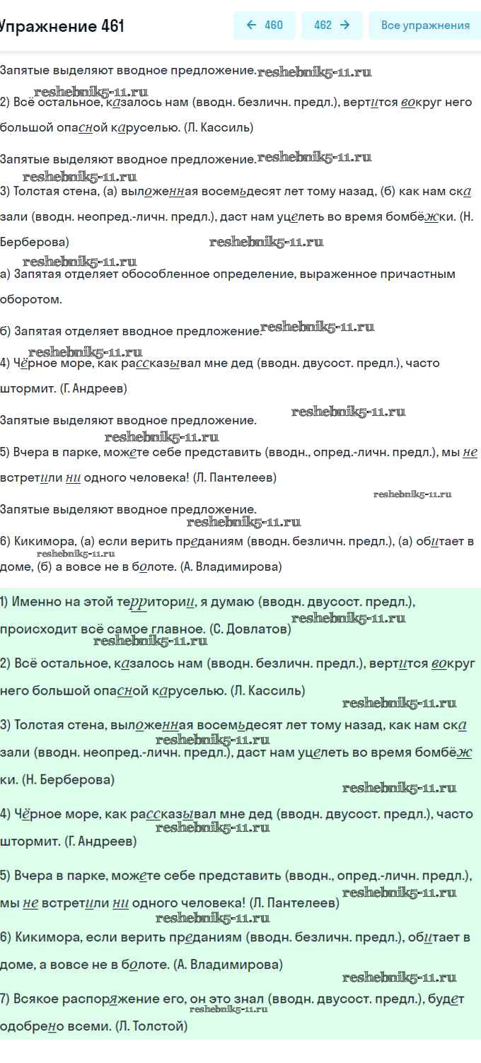 Готовая домашняя работа с ответами по Русскому языку за 8 класс Рыбченкова, Александрова, Загоровская, Нарушевич Учебник УМК Просвещение 2015 ФГОС - Упражнения 461