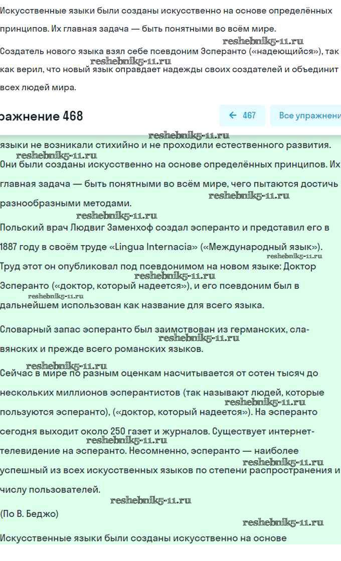 Русский язык за 8 класс Рыбченкова Учебник УМК Просвещение упражнение 468