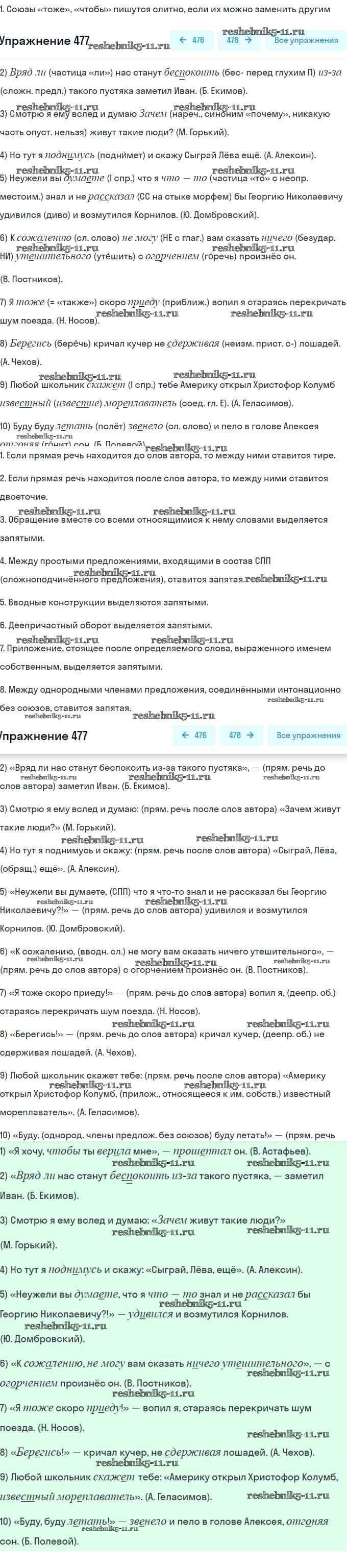 Готовая домашняя работа с ответами по Русскому языку за 8 класс Рыбченкова, Александрова, Загоровская, Нарушевич Учебник УМК Просвещение 2015 ФГОС - Упражнения 477