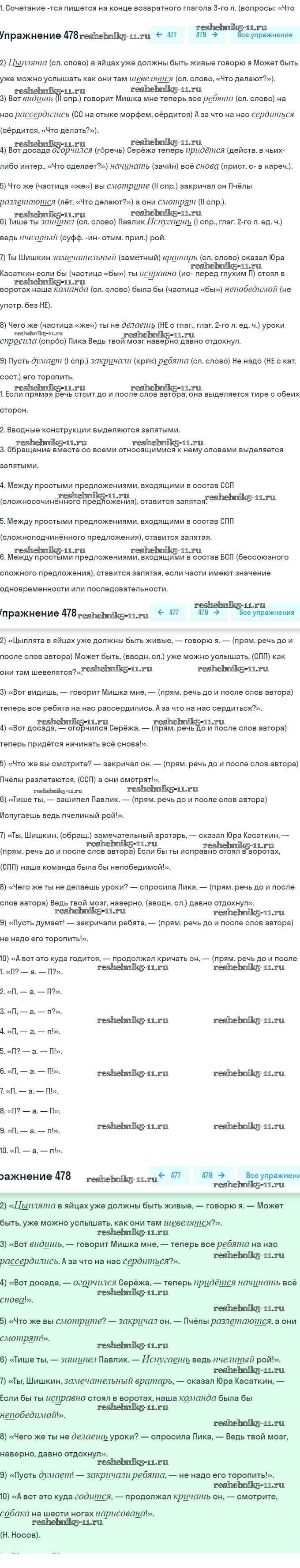 Готовая домашняя работа с ответами по Русскому языку за 8 класс Рыбченкова, Александрова, Загоровская, Нарушевич Учебник УМК Просвещение 2015 ФГОС - Упражнения 478