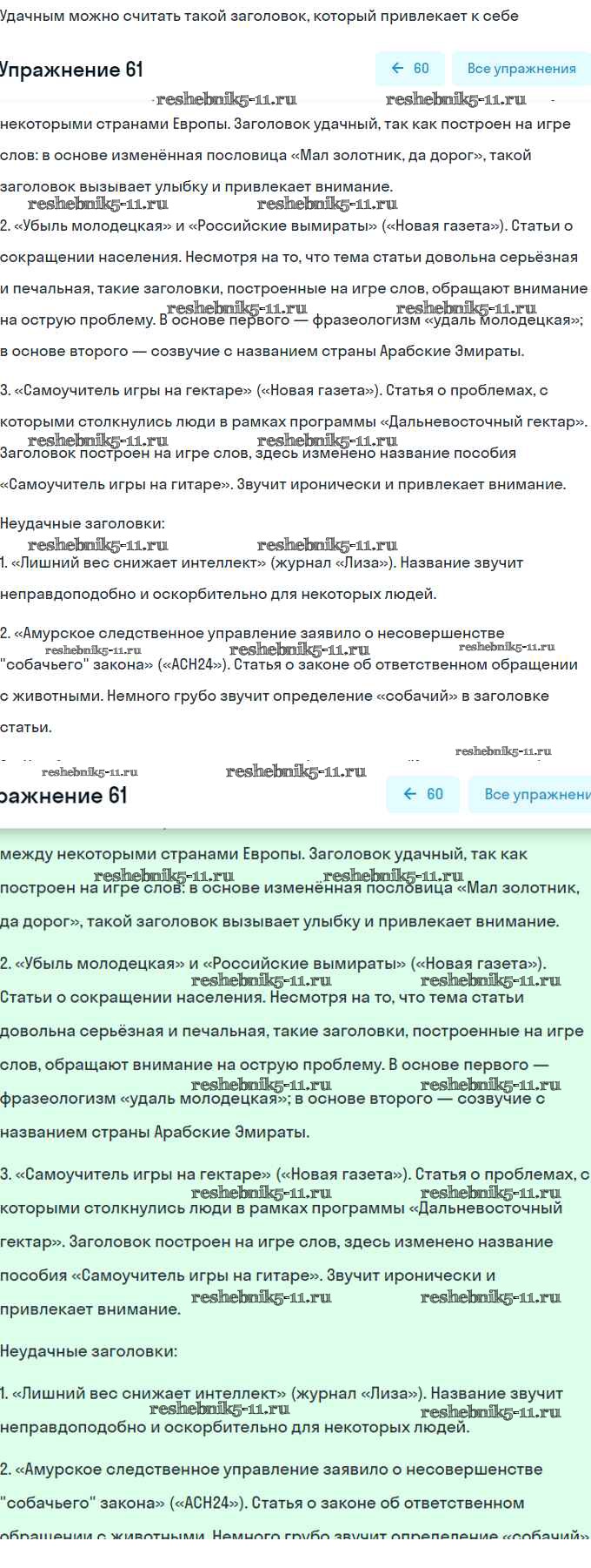 Русский язык за 8 класс Рыбченкова Учебник УМК Просвещение упражнение 61