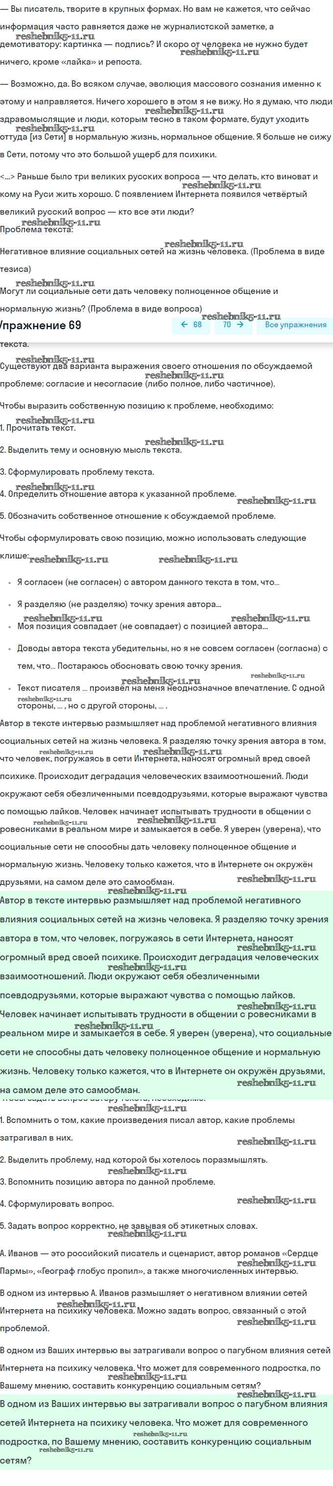 Русский язык за 8 класс Рыбченкова Учебник УМК Просвещение упражнение 69