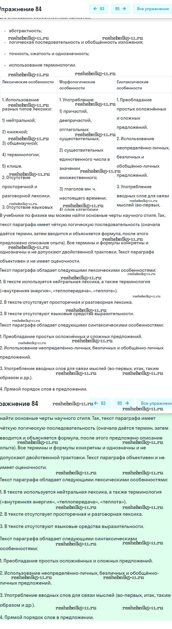 Готовая домашняя работа с ответами по Русскому языку за 8 класс Рыбченкова, Александрова, Загоровская, Нарушевич Учебник УМК Просвещение 2015 ФГОС - Упражнения 84