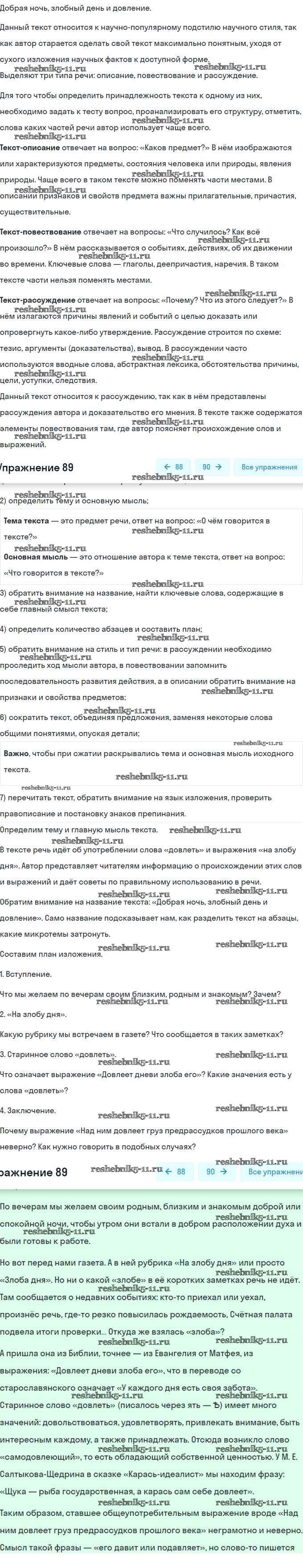 Готовая домашняя работа с ответами по Русскому языку за 8 класс Рыбченкова, Александрова, Загоровская, Нарушевич Учебник УМК Просвещение 2015 ФГОС - Упражнения 89