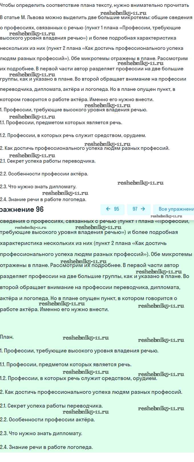 Русский язык за 8 класс Рыбченкова Учебник УМК Просвещение упражнение 96