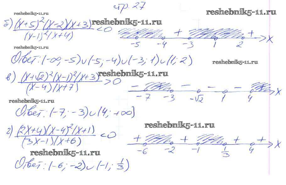 Готовая домашняя работа с ответами по Алгебре за 9 класс Ключникова, Комиссарова Рабочая тетрадь УМК Экзамен 2013 ФГОС - §2. Рациональные неравенства 11
