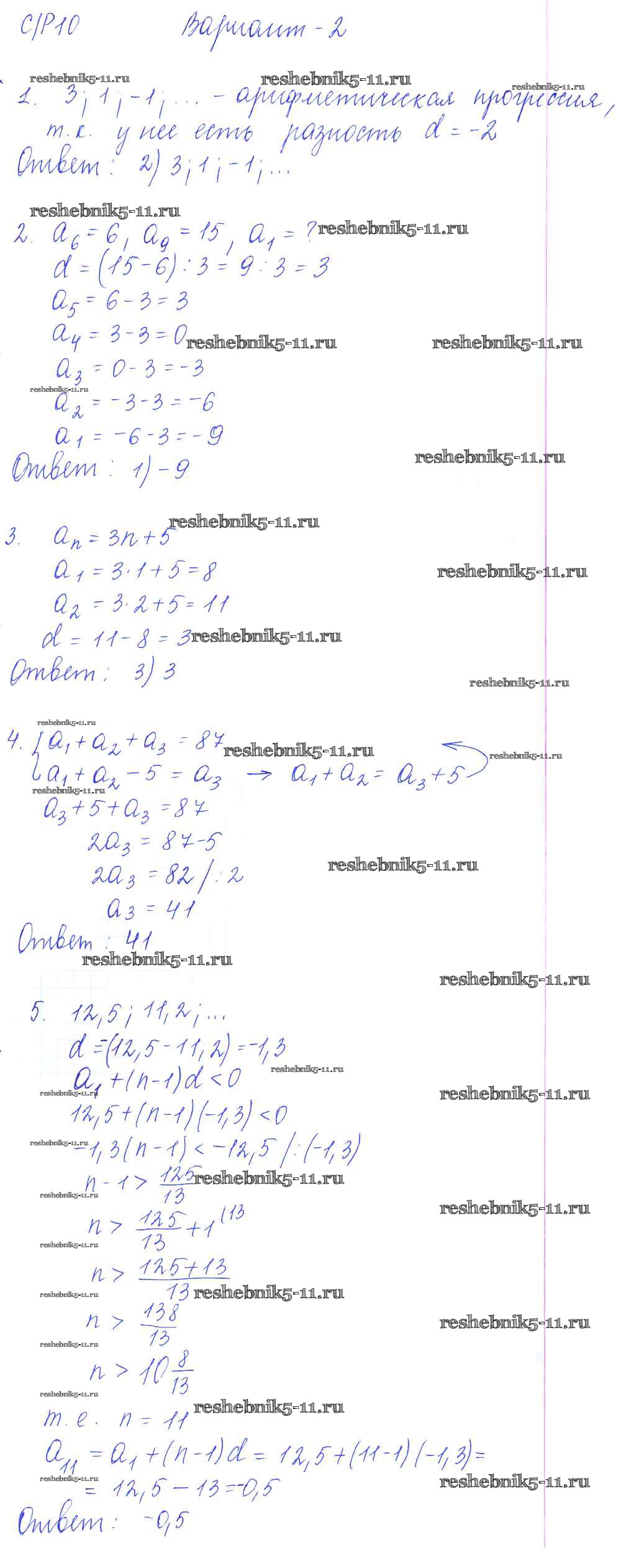 Решебник / самостоятельная работа / ср-10 / вариант 2