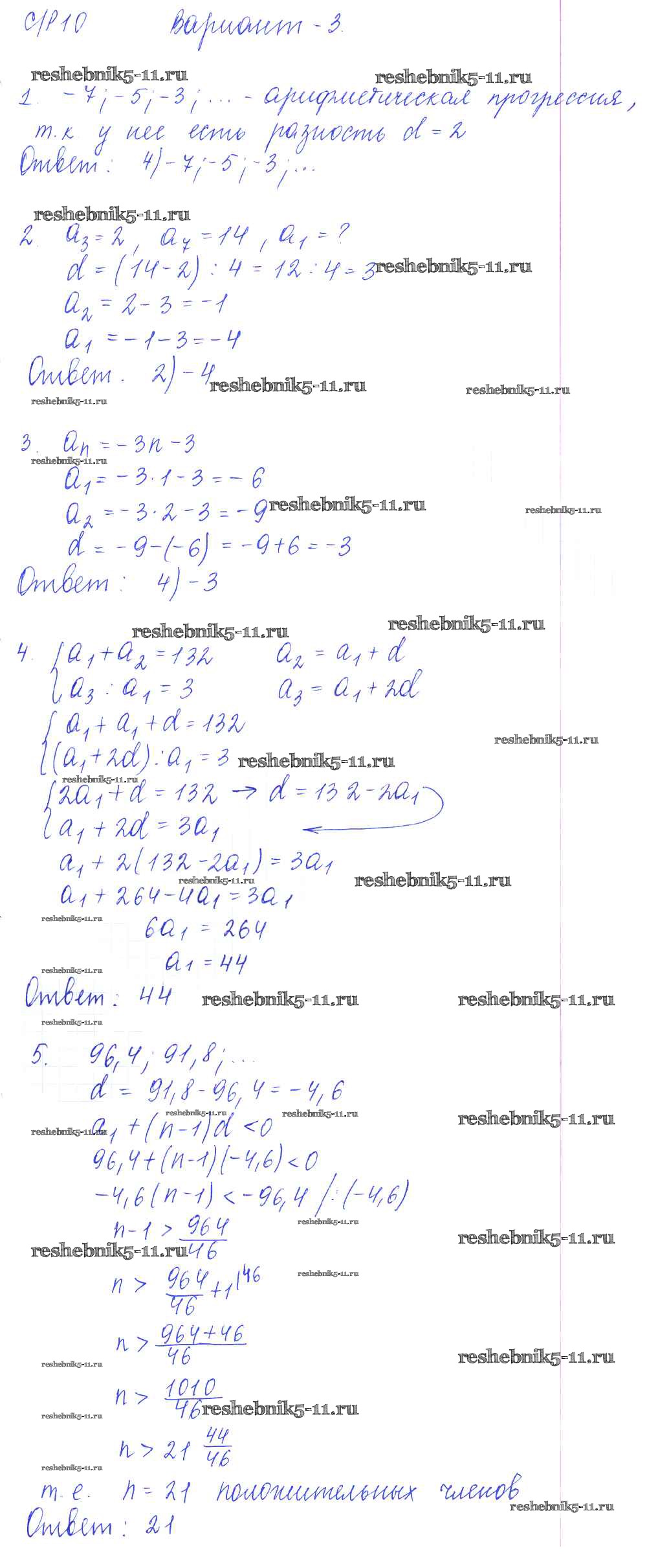 Готовая домашняя работа с ответами по Алгебре за 9 класс Глазков, Варшавский, Гаиашвили Самостоятельные и контрольные работы УМК Экзамен 2013 ФГОС - СР-10. Арифметическая прогрессия вариант 3