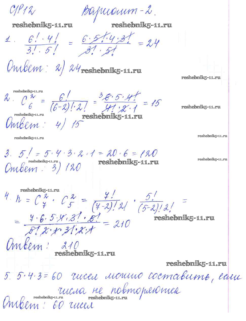 Решебник / самостоятельная работа / ср-12 / вариант 2