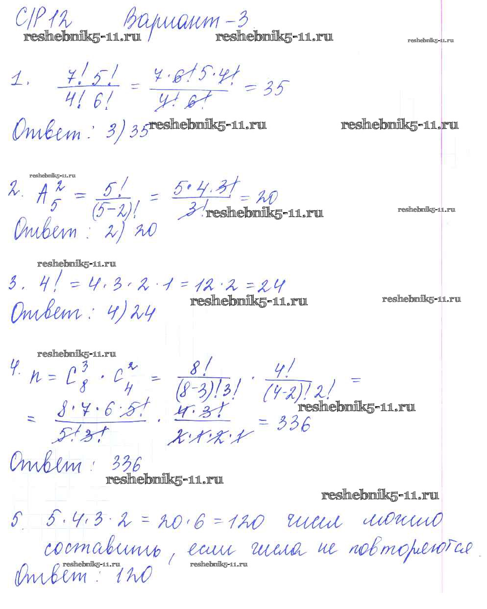 Готовая домашняя работа с ответами по Алгебре за 9 класс Глазков, Варшавский, Гаиашвили Самостоятельные и контрольные работы УМК Экзамен 2013 ФГОС - СР-12. Элементы комбинаторики вариант 3