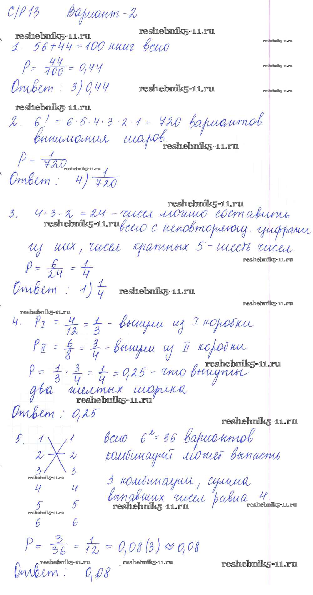 Готовая домашняя работа с ответами по Алгебре за 9 класс Глазков, Варшавский, Гаиашвили Самостоятельные и контрольные работы УМК Экзамен 2013 ФГОС - СР-13. Начальные сведения из теории вероятностей вариант 2