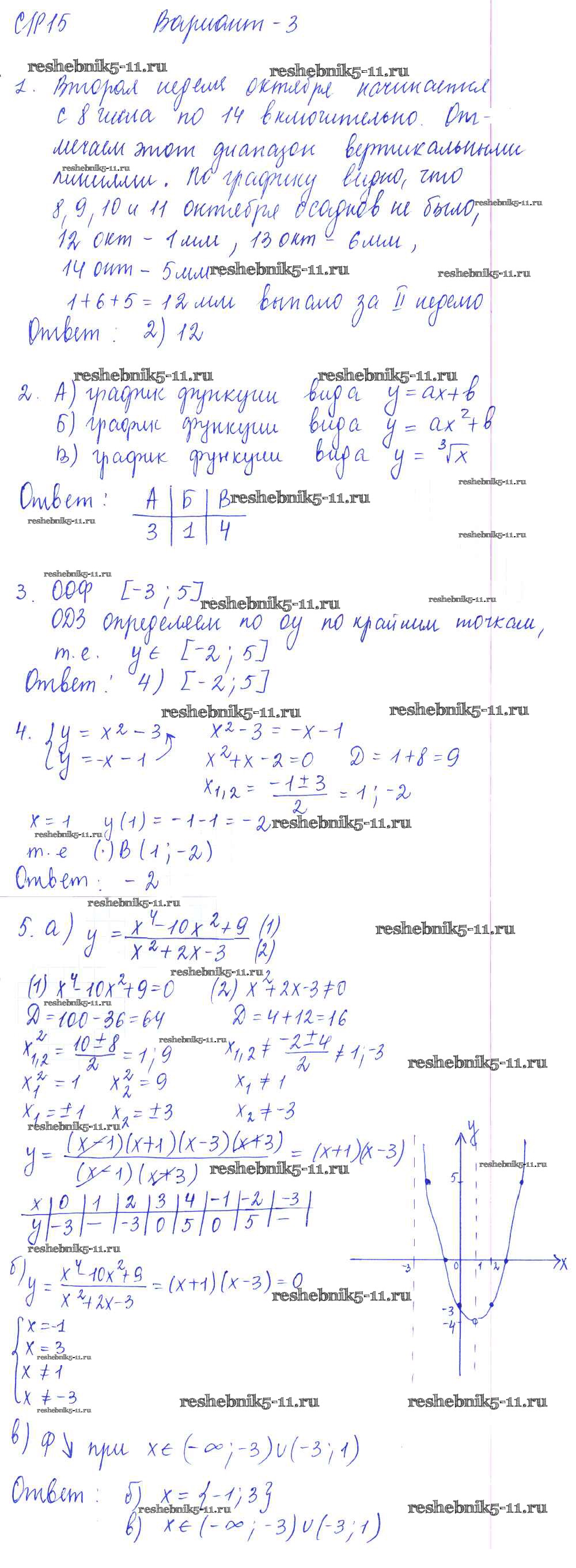 Готовая домашняя работа с ответами по Алгебре за 9 класс Глазков, Варшавский, Гаиашвили Самостоятельные и контрольные работы УМК Экзамен 2013 ФГОС - СР-15. Итоговое повторение. Функции и графики. Графическое решение уравнений и их систем вариант 3