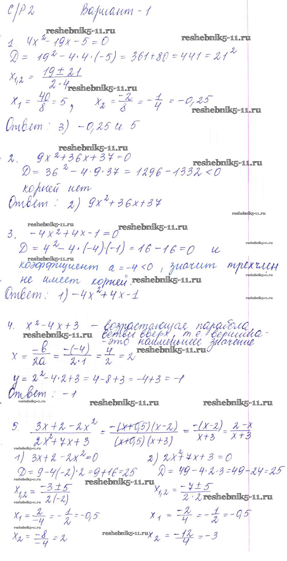 Готовая домашняя работа с ответами по Алгебре за 9 класс Глазков, Варшавский, Гаиашвили Самостоятельные и контрольные работы УМК Экзамен 2013 ФГОС - СР-2. Квадратный трехчлен вариант 1