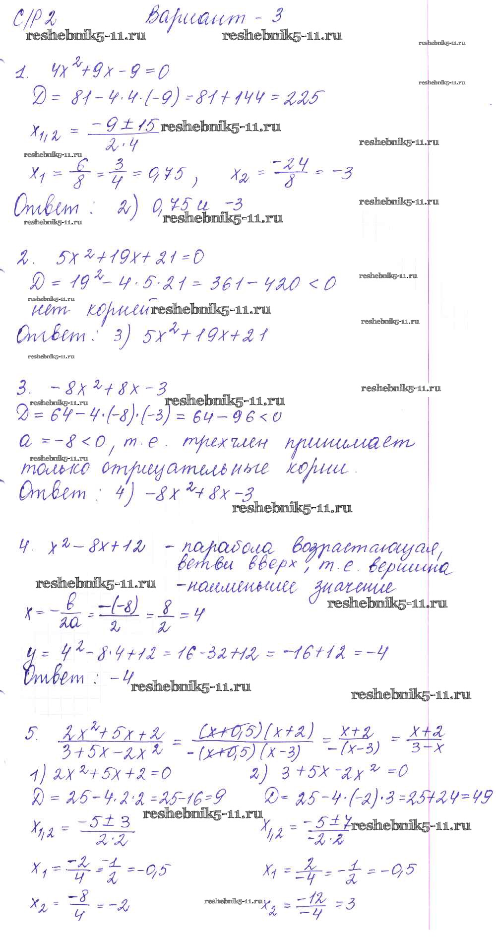 Готовая домашняя работа с ответами по Алгебре за 9 класс Глазков, Варшавский, Гаиашвили Самостоятельные и контрольные работы УМК Экзамен 2013 ФГОС - СР-2. Квадратный трехчлен вариант 3