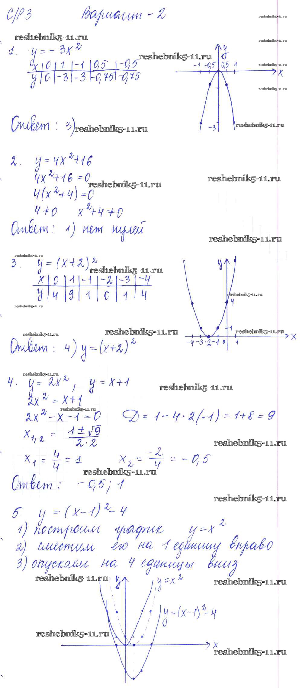 Готовая домашняя работа с ответами по Алгебре за 9 класс Глазков, Варшавский, Гаиашвили Самостоятельные и контрольные работы УМК Экзамен 2013 ФГОС - СР-3. Квадратичная функция и её график вариант 2