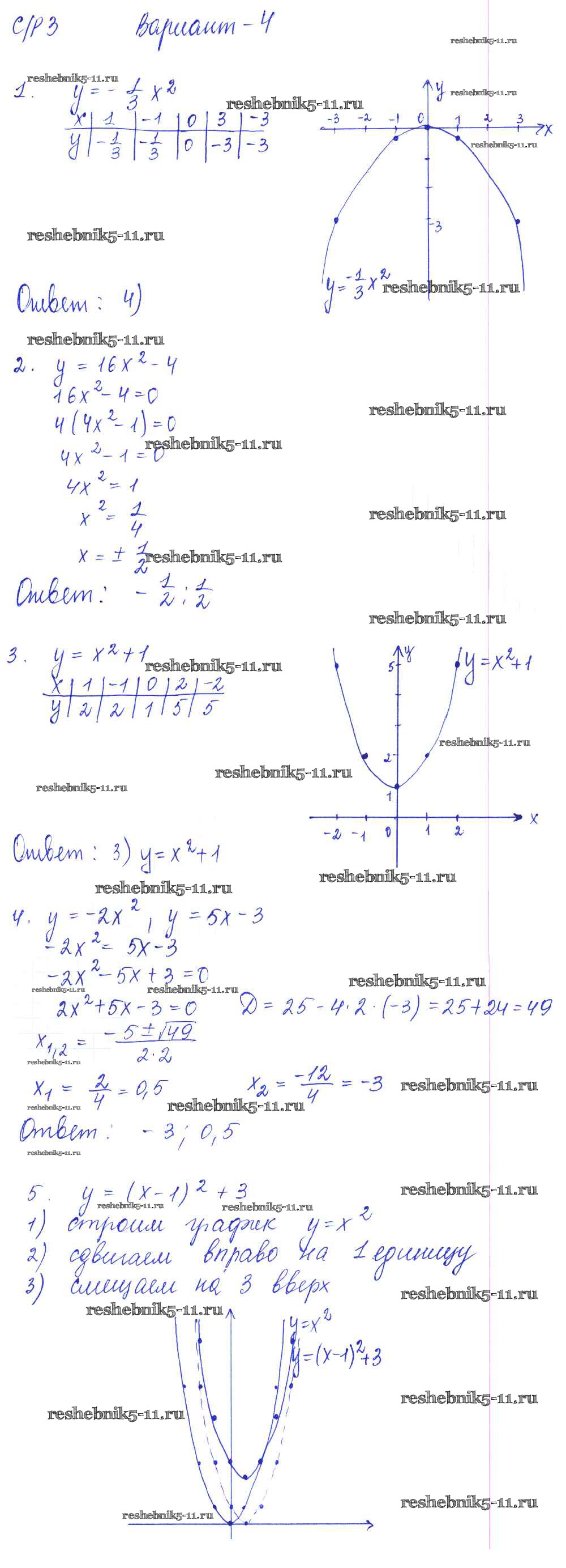 Готовая домашняя работа с ответами по Алгебре за 9 класс Глазков, Варшавский, Гаиашвили Самостоятельные и контрольные работы УМК Экзамен 2013 ФГОС - СР-3. Квадратичная функция и её график вариант 4